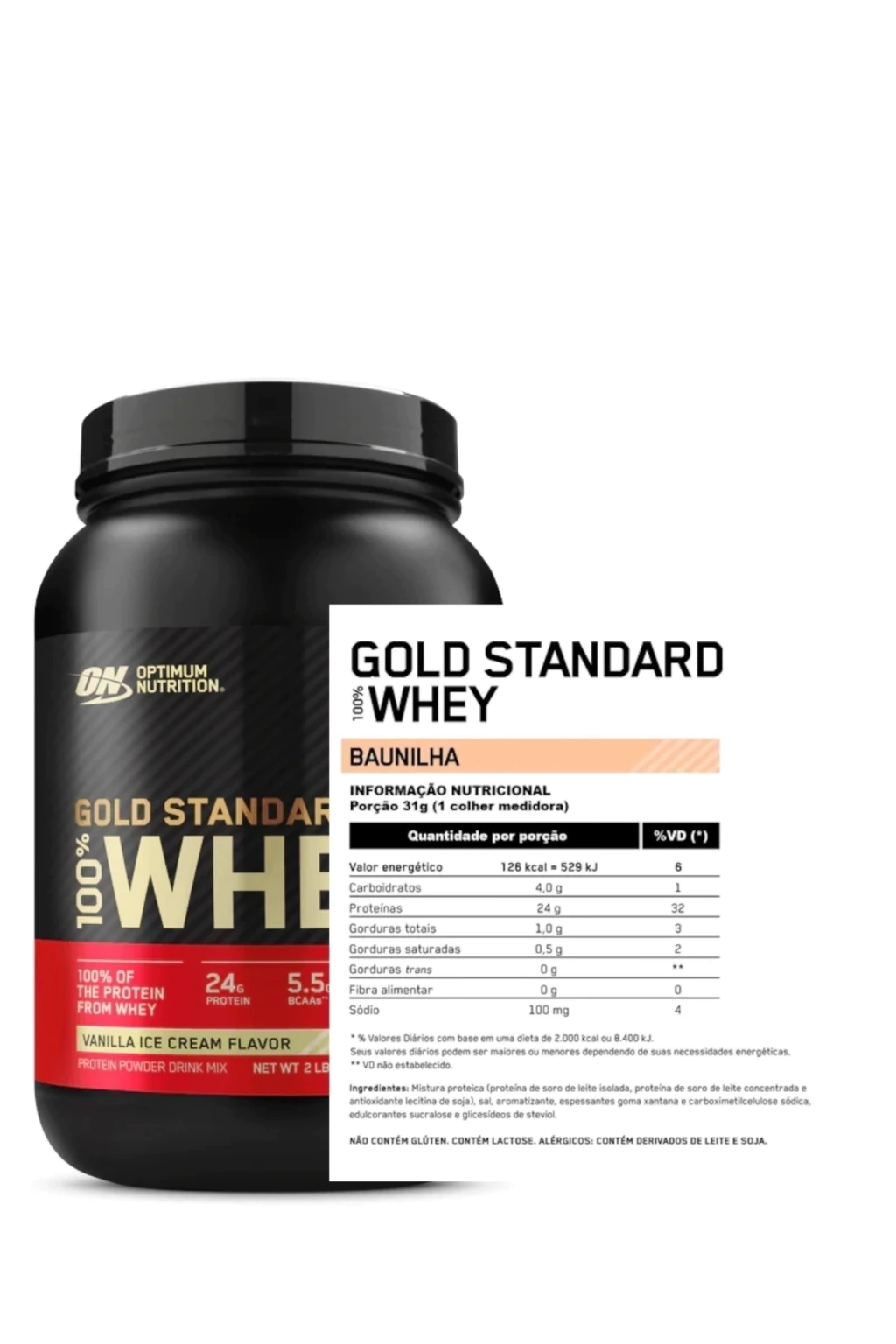 O Whey Gold Standard é um suplemento alimentar à base de proteína do soro do leite, com 24g de proteína por porção. Combina diferentes tipos de Whey (Isolado, Concentrado e Hidrolisado) e é produzido com alta qualidade e procedência confiável.